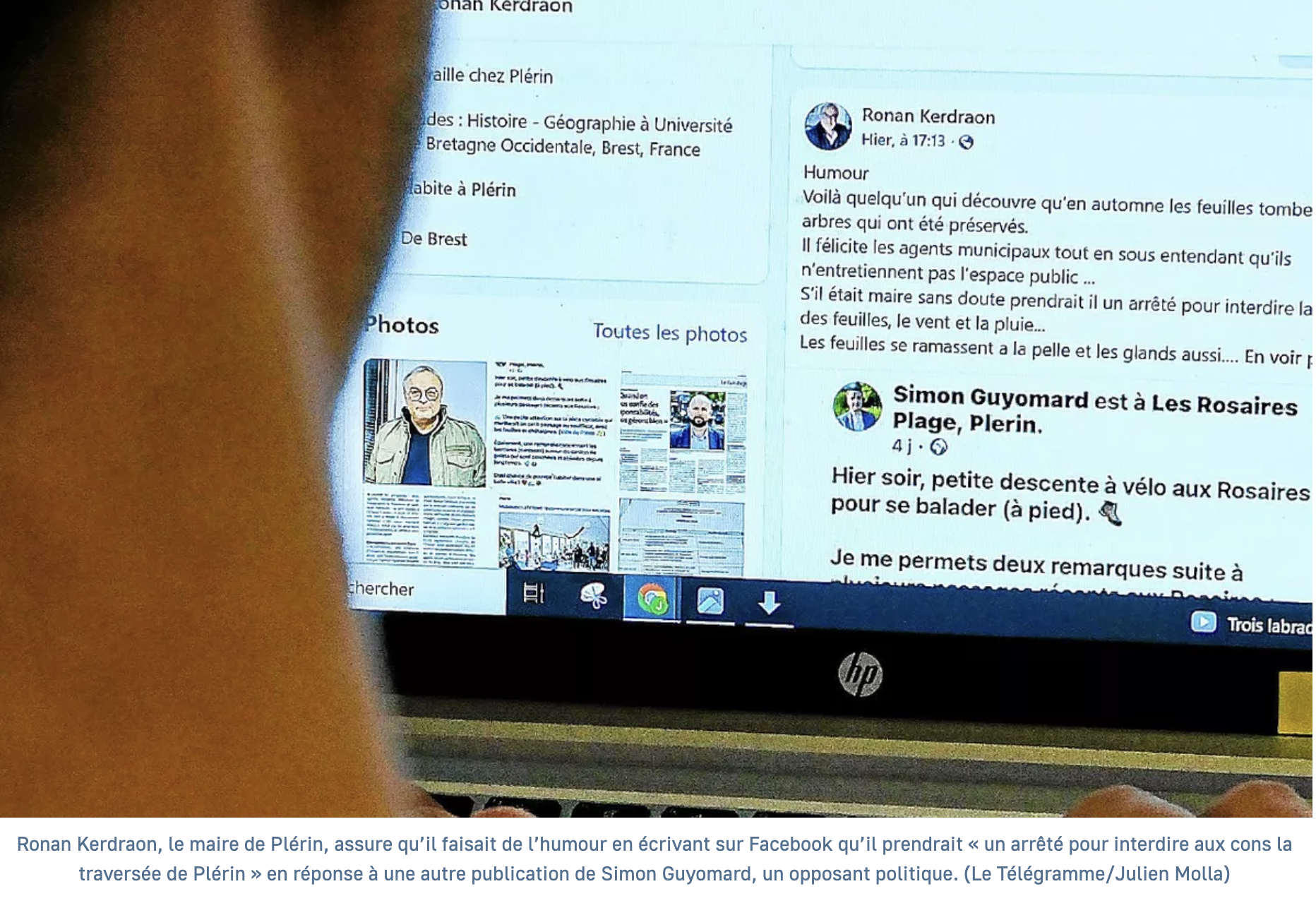 NO COMMENT Télégramme.À Plérin, le maire plaide l’humour après une réponse corrosive à un opposant sur Facebook La commune de Plérin organise une réunion publique, lundi 2 février à 18h à l’Espace Roger Ollivier à Plérin , pour présenter les résultats d’une étude menée par l’Agglomération de Saint-Brieuc sur le recul du trait de côte à horizon 30 et 100 ans. 24/02/2026 Aucun commentaire